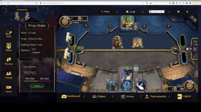 GUStakes es la primera aplicación descentralizada que permite realizar apuestas “trustless” entre pares (peer-to-peer) en el juego de cartas NFT Gods Unchained. GUStakes aprovecha las transacciones económicas de Polygon para lanzar múltiples contratos que se entrelazan entre sí para utilizar la API del juego como oráculo decisor la dApp.